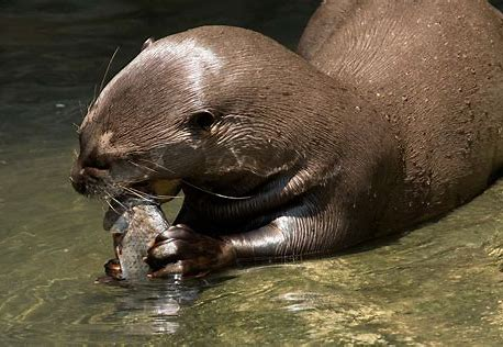 These otters aren't the cute and fuzzy creatures I initially thought they'd be; Giant River Otters are actually lethal killing machines, at least to schools of fish. The Giant River Otter : Pteronura brasiliensis Description : Giant River Otters are the largest freshwater otter species, and the longest members of the Mustelidae family. They can reach up to six feet in length and weigh between 50 and 70 pounds; females are slightly smaller and lighter. All Giant River Otters have sleek, muscular bodies, resembling weasels more than other species of otters. They also have unique white and brown neck patches which help them distinguish members of their own family. Their sharp teeth and size give the nickname, 'River Wolf'; in fact, Giant River Otters were once the size of actual wolves. Habitat : These otters live along slow-moving rivers that are often located near swamps and marshes. The species is spread out across North-Central South America with the largest p...